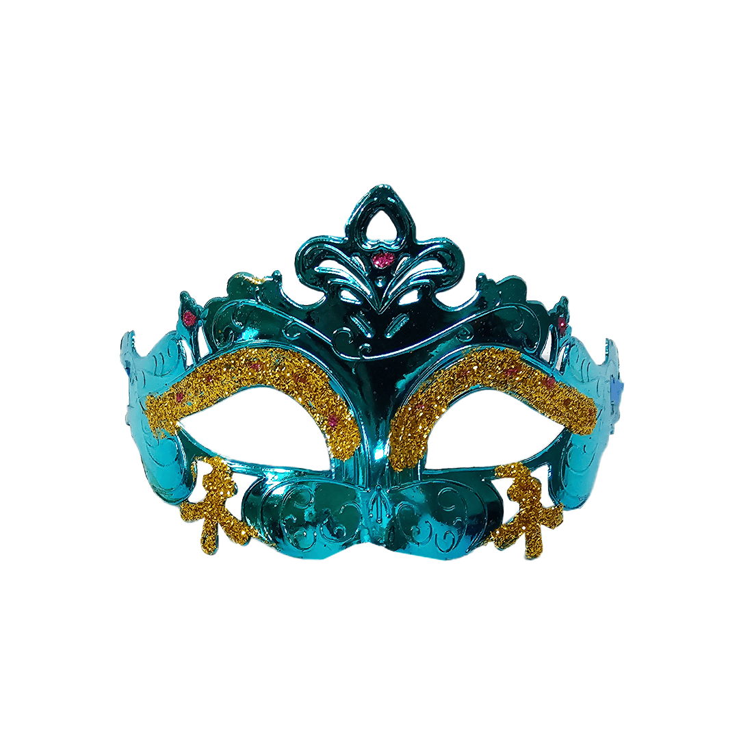 Antifaz plástico diseño metálico con glitter. Disponible en color: naranja, plateado, morado, fucsia y dorado. Nota: Este producto es de presentación surtida, por lo que podrías recibir cualquiera de sus variaciones. Si prefieres un diseño específico, indícalo en tu pedido; se enviará según disponibilidad.