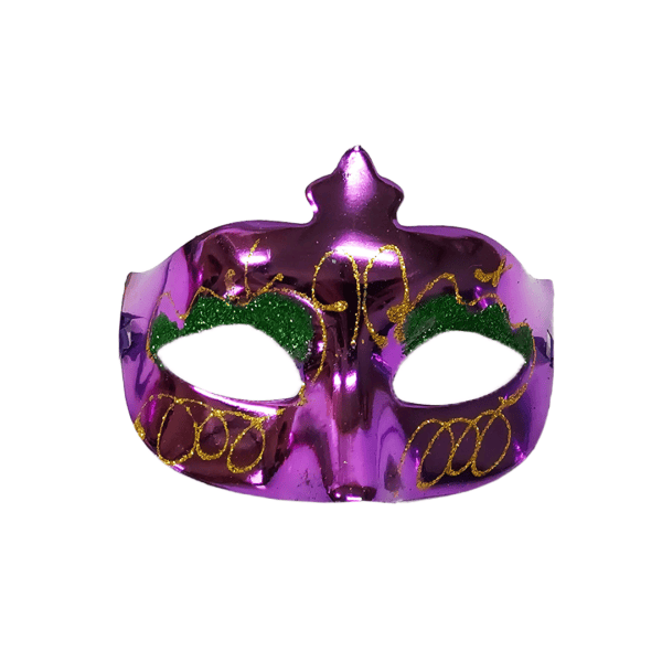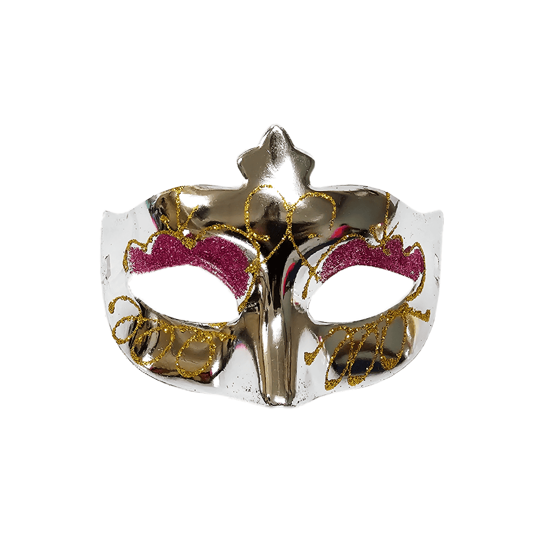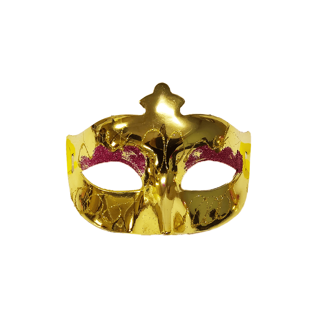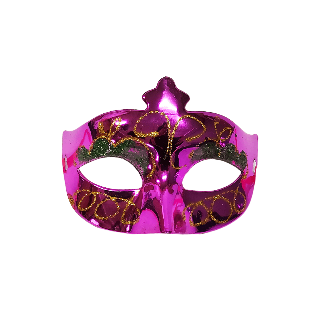 Antifaz plástico diseño metálico con glitter. Disponible en color: naranja, plateado, morado, fucsia y dorado. Nota: Este producto es de presentación surtida, por lo que podrías recibir cualquiera de sus variaciones. Si prefieres un diseño específico, indícalo en tu pedido; se enviará según disponibilidad.