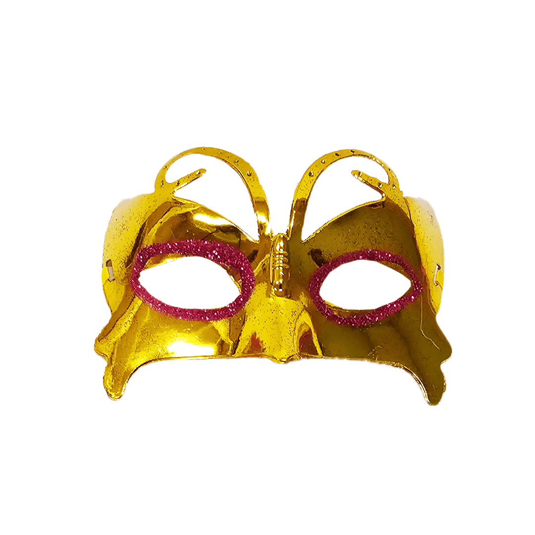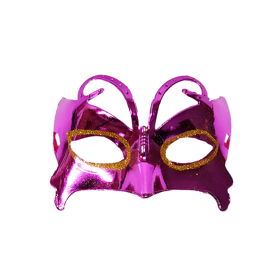 Antifaz plástico diseño metálico con glitter. Disponible en color: naranja, plateado, morado, fucsia y dorado. Nota: Este producto es de presentación surtida, por lo que podrías recibir cualquiera de sus variaciones. Si prefieres un diseño específico, indícalo en tu pedido; se enviará según disponibilidad.