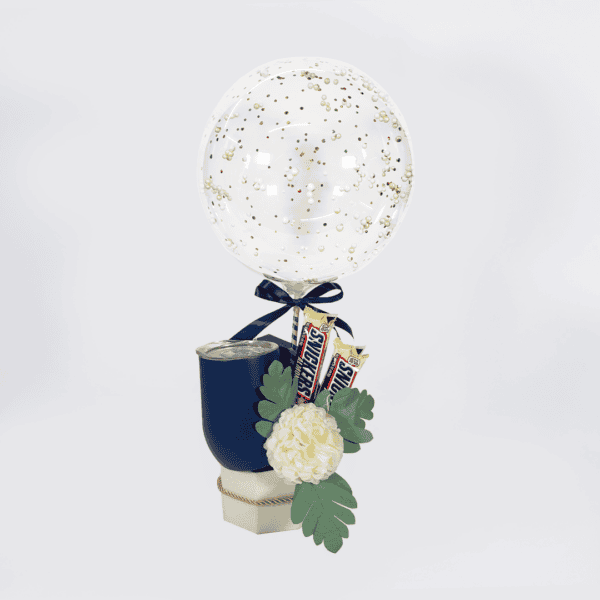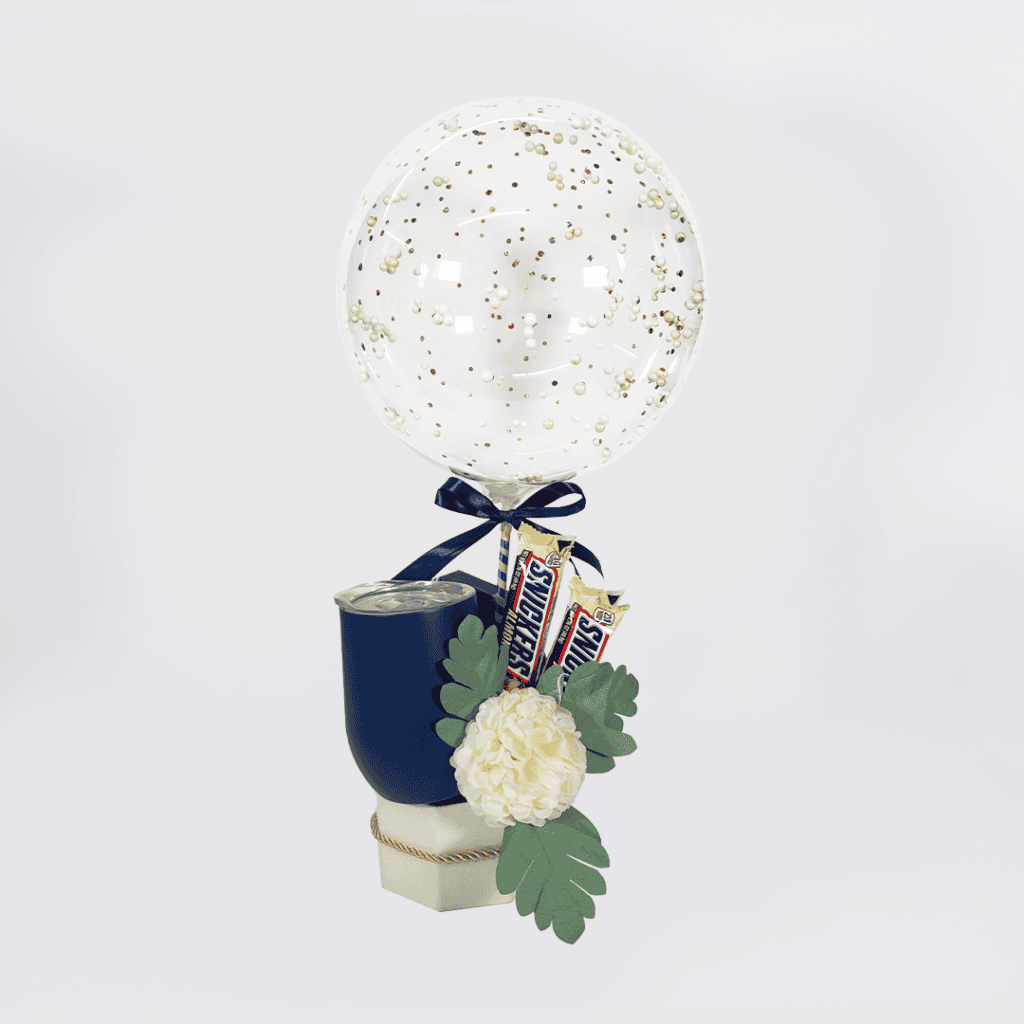 Arreglo burbuja con termo. Incluye globo burbuja que se puede perzonalizar con frase de 3 palabras