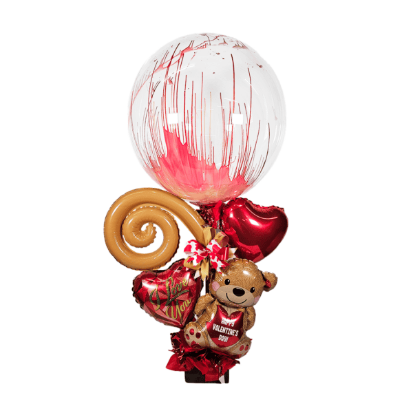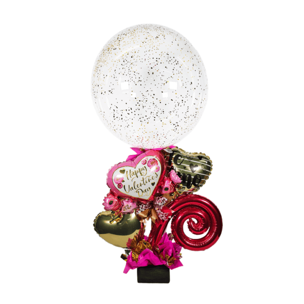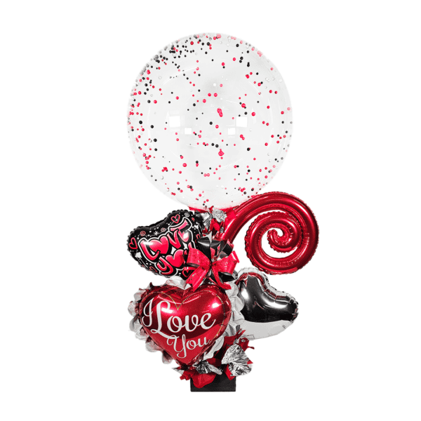 Arreglo burbuja día del cariño, ideal para regalar en San Valentín. Incluye: Globo burbuja (diseño pintura, confeto o microperla) se puede personalizar con frase de 3 palabras, 4 globos minishape y base de madera, puede agregar una tarjetita de/para con dedicatoria. Nota: Este producto es de presentación surtida, por lo que podría recibir cualquiera de sus variaciones. Si prefiere un color específico, indícalo en su pedido; se enviará según disponibilidad.