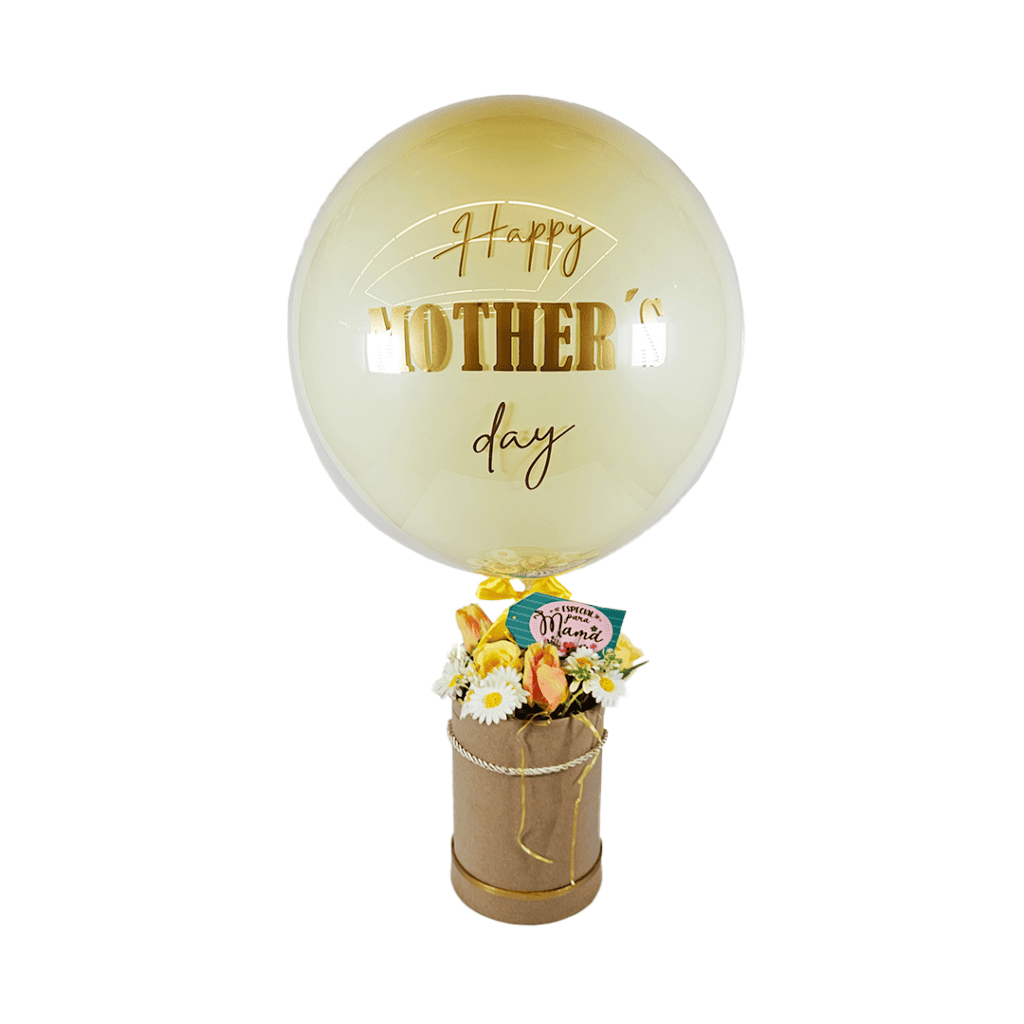 Arreglo del día de la Madre Caja de carton que lleva la frase Feliz día con peluche y chocolates