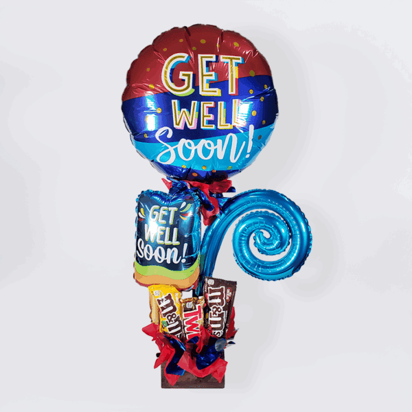 Arreglo estándar metálico con 3 chocolates Get Well Hombre