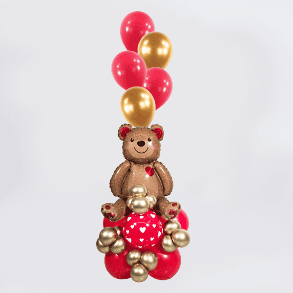 Tierno y encantador arreglo con un globo metálico de osito, acompañado de globos de látex con helio en colores personalizables. ¡Perfecto para sorprender con dulzura!