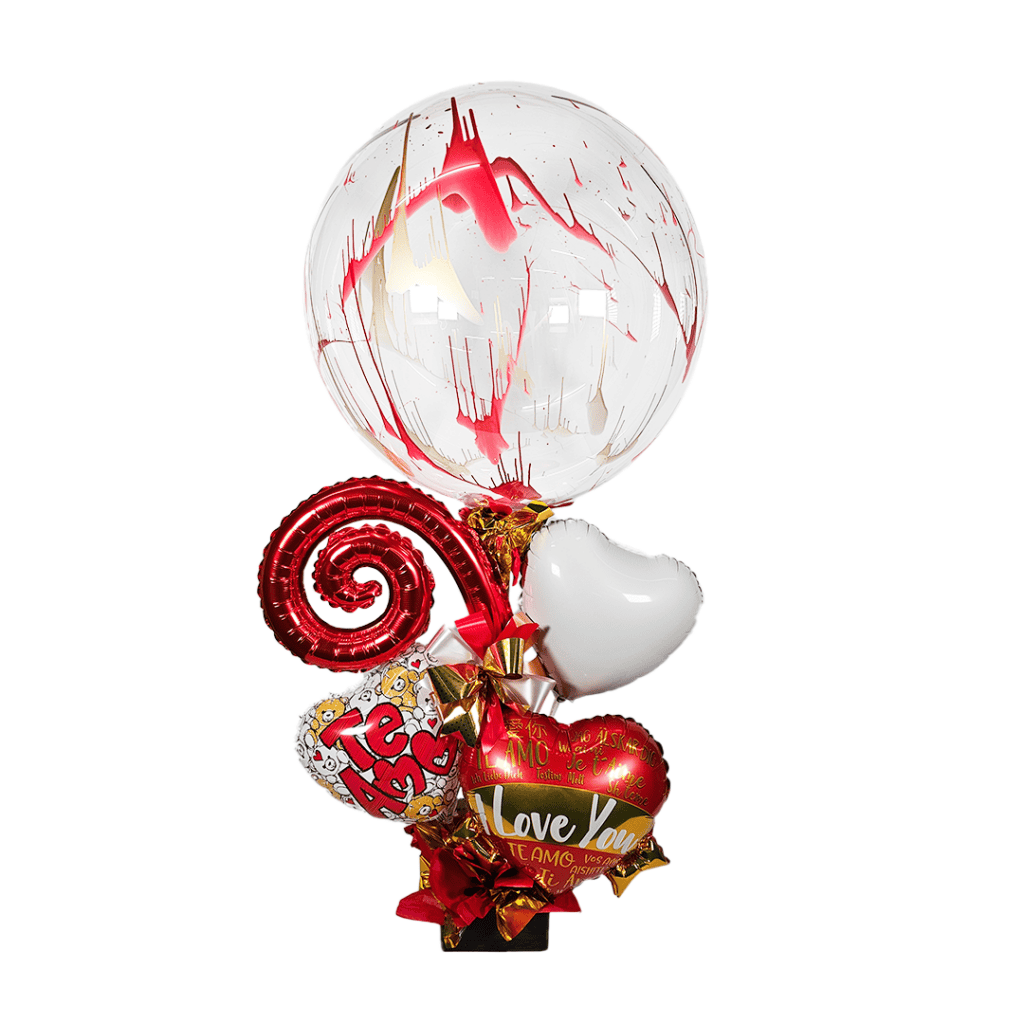 Arreglo mini burbuja con chocolates, incluye mini globo burba con globo látex de color (se puede personalizar con frase de 3 palabras), moña, tarjeta y caja de Chocolate Ferrero Rocher de 16 unidades. Nota: Este producto es de presentación surtida, por lo que podría recibir cualquiera de sus variaciones. Si prefiere un color específico, indícalo en su pedido; se enviará según disponibilidad.