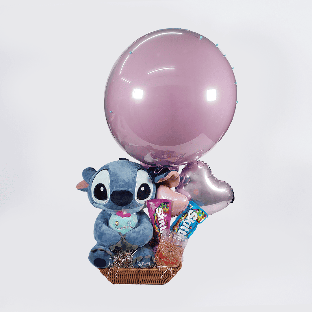 Arreglo con peluche mediano, contiene un globo burbuja que puede ser personalizado con frases de tres palabras.