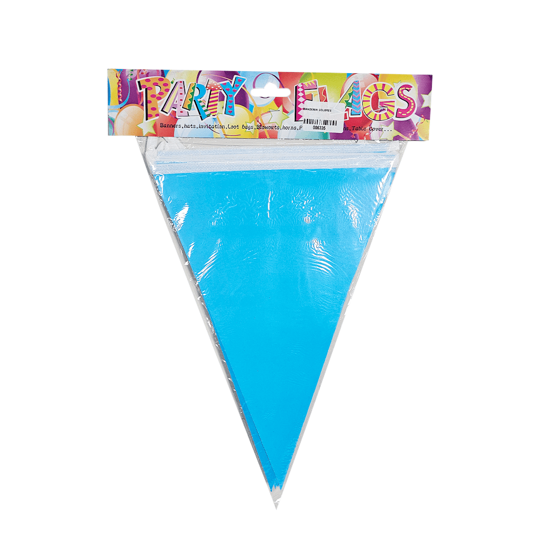 Banderín de color, disponible en color celeste o azul. Nota: Este producto es de presentación surtida, por lo que podrías recibir cualquiera de sus variaciones. Si prefieres un diseño específico, indícalo en tu pedido; se enviará según disponibilidad.
