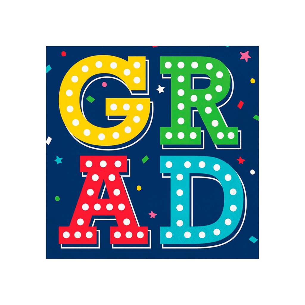 Banner de graduación multicolor. Congrats Grad. Tamaño: 2.43 metros.