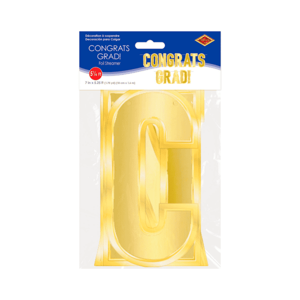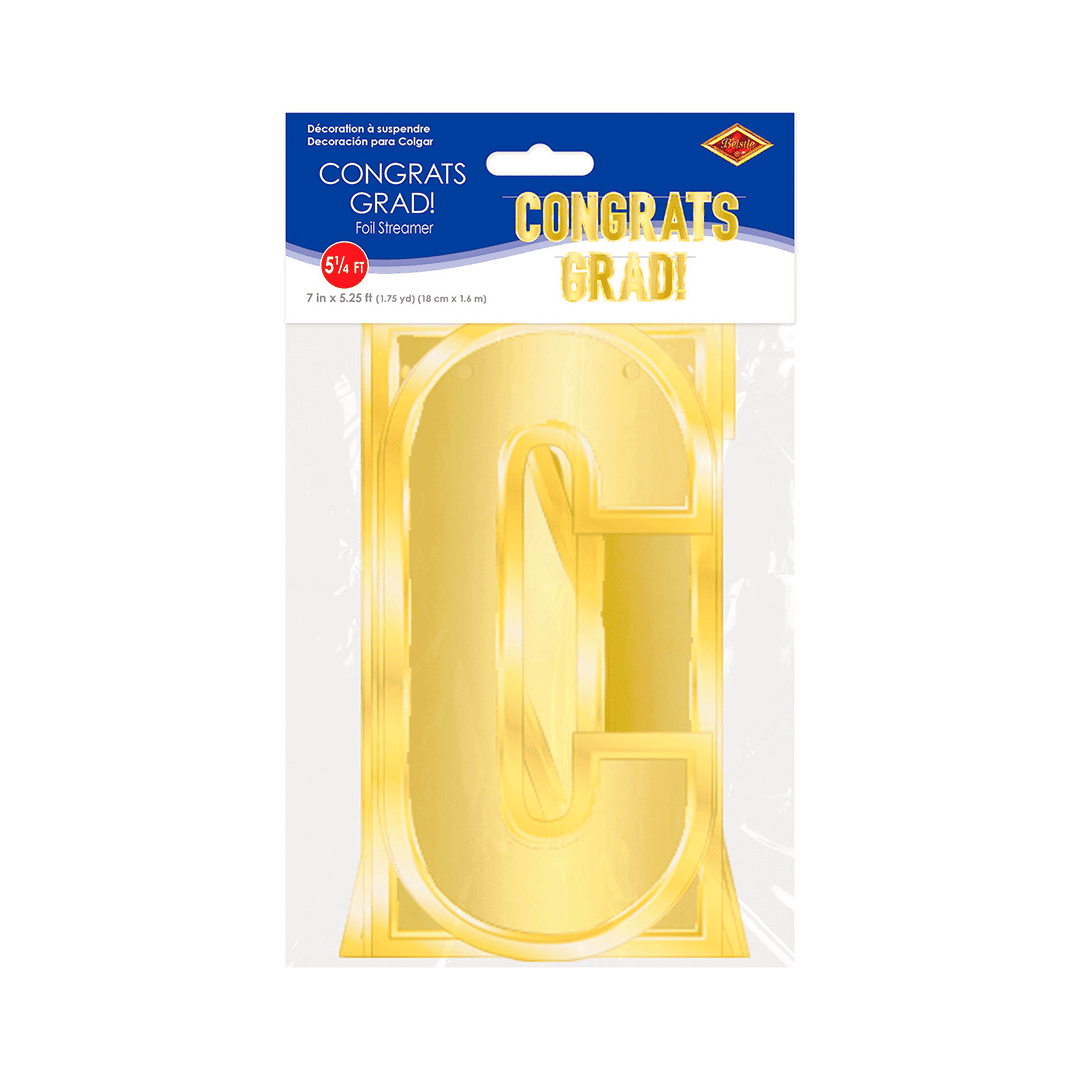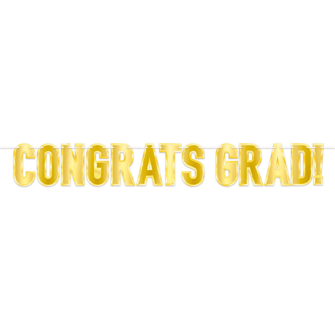 Banner de graduación congrats grad. Color dorado. tamaño: 1.6 metros.