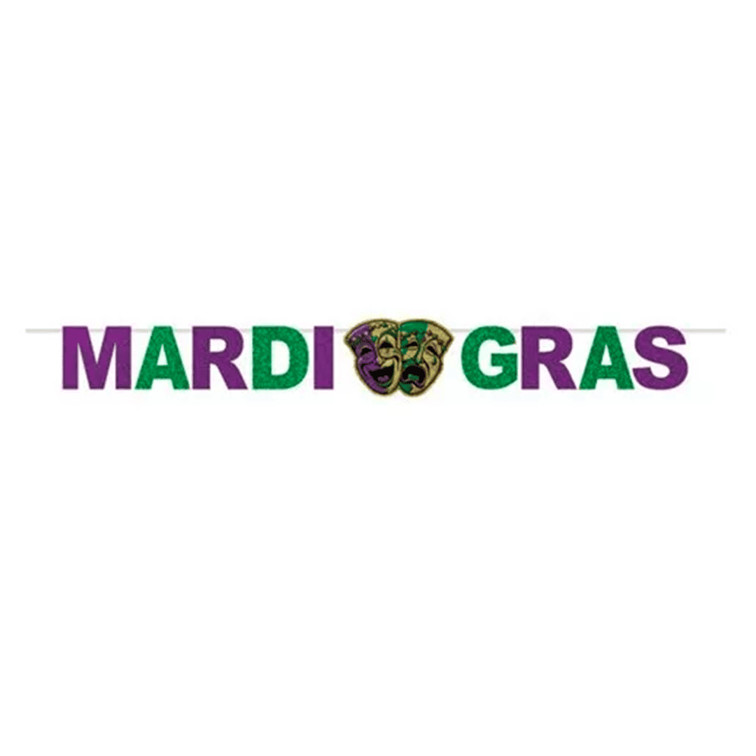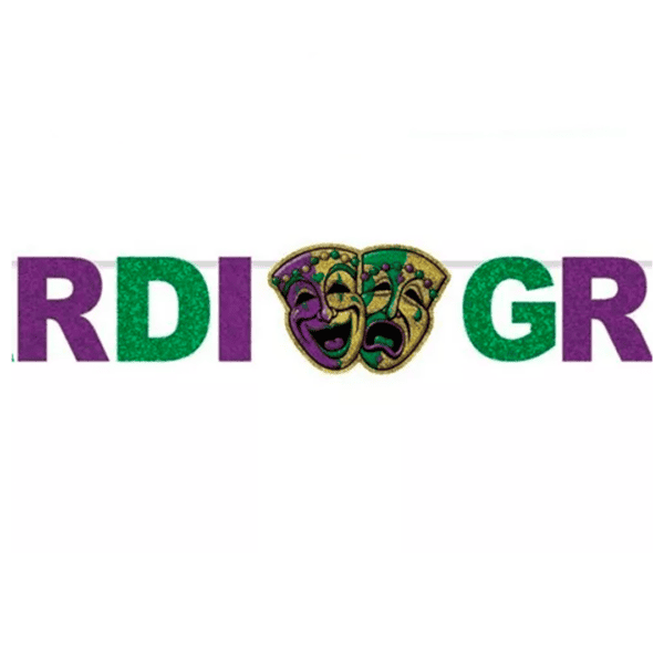 Banner Mardi Gras de 8 pies. Diseño metálico multicolor.