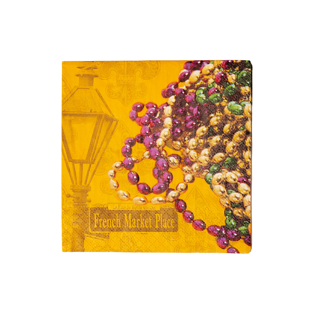 Banner metálico carnaval, mide 3.65 metros. Diseño platado con antifaces Mardi Gras!