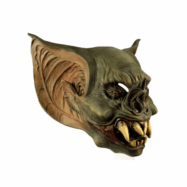 Máscara de látex Bat Creature de la línea de Vampires. ¡Prepárate para una noche de Halloween embrujada con la máscara de Bat Creature! Esta criatura de la oscuridad está lista para desatar su poder en las calles nocturnas. Conviértete en el temible vampiro que acecha en la noche, listo para causar alboroto en esta festividad tenebrosa.