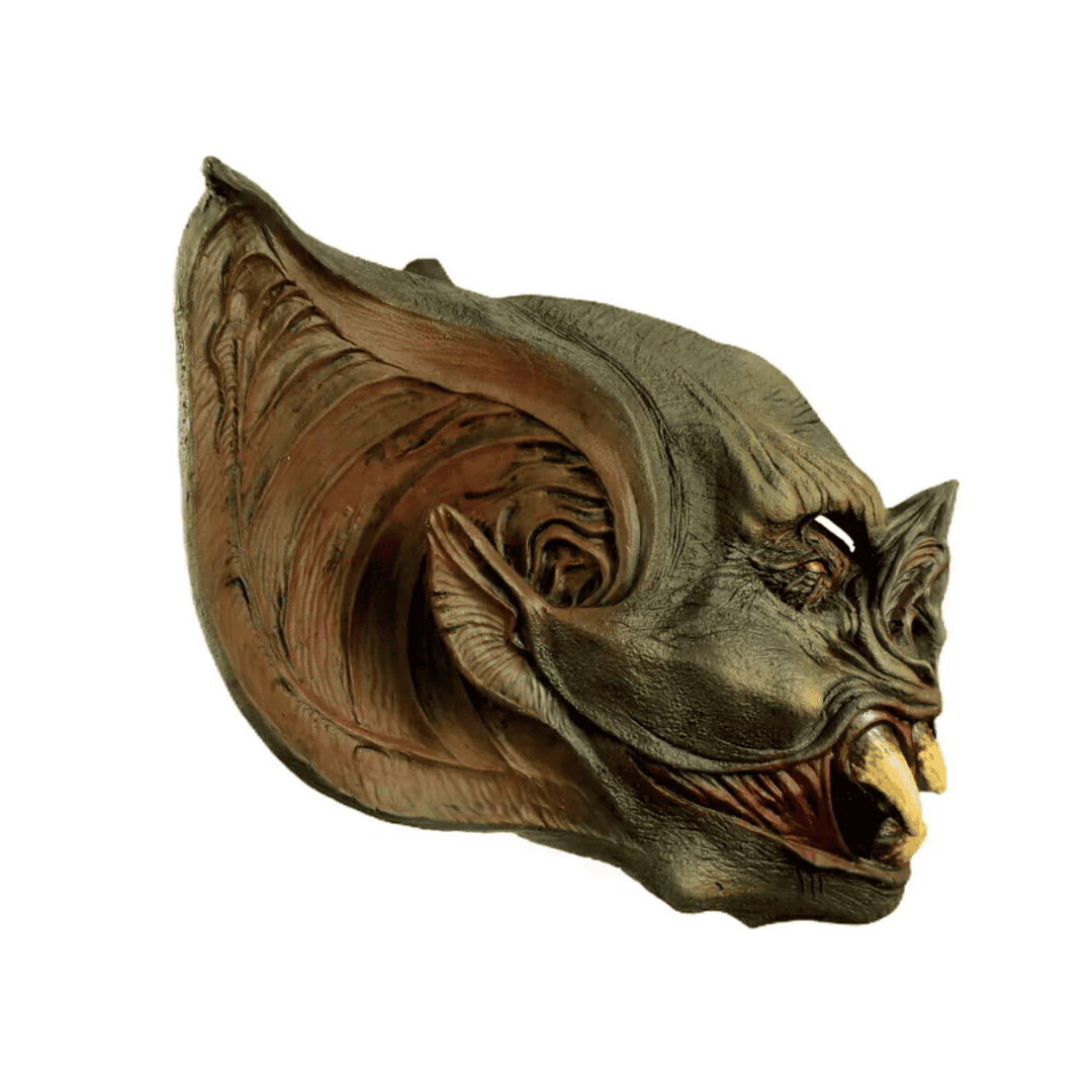 Máscara de látex Bat Creature de la línea de Vampires. ¡Prepárate para una noche de Halloween embrujada con la máscara de Bat Creature! Esta criatura de la oscuridad está lista para desatar su poder en las calles nocturnas. Conviértete en el temible vampiro que acecha en la noche, listo para causar alboroto en esta festividad tenebrosa.