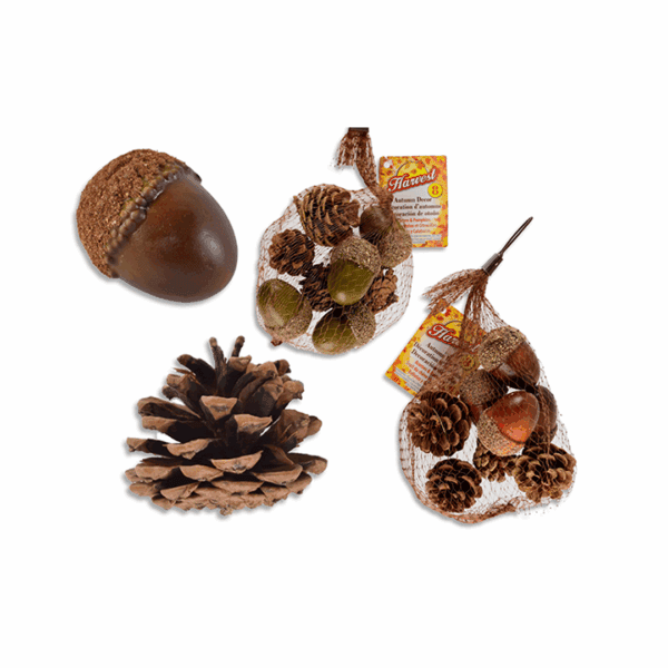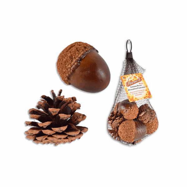Surtido de 8 bellotas/calabazas otoñales en bolsa de malla. 2 colores disponibles: verde + marrón. Nota: Este producto es de presentación surtida, por lo que podrías recibir cualquiera de sus variaciones. Si prefieres un diseño específico, indícalo en tu pedido; se enviará según disponibilidad.