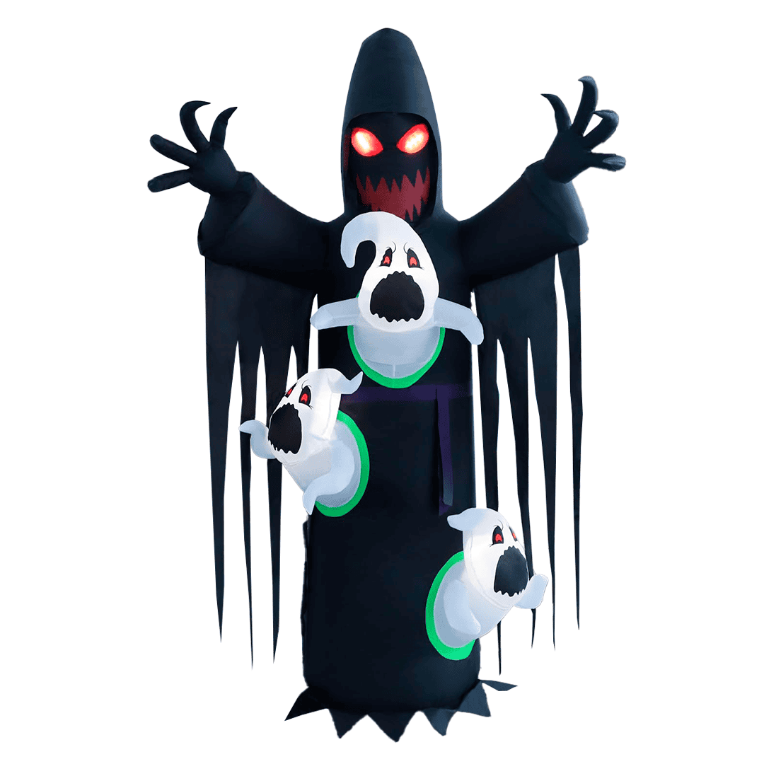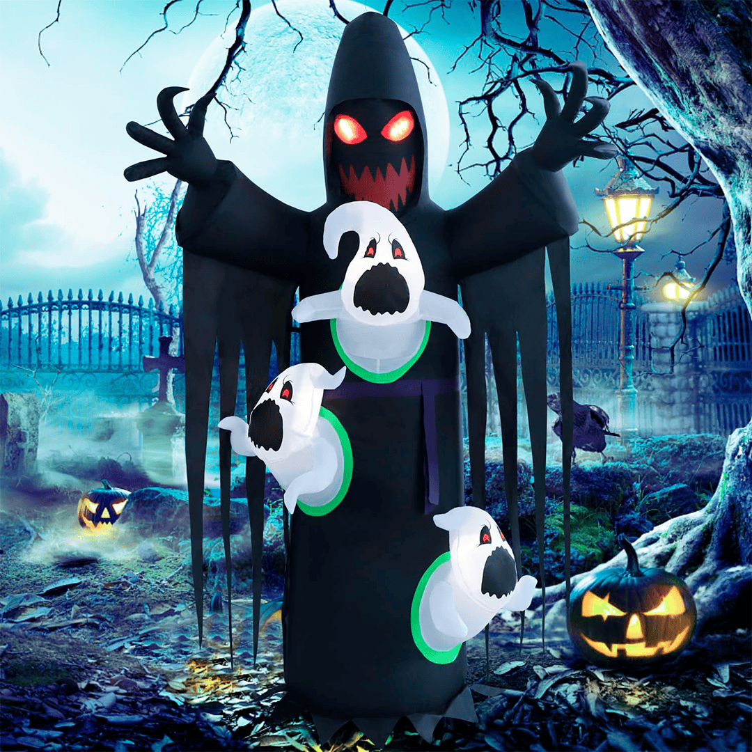 Trío de pequeños fantasmas negros para complementar la decoración.