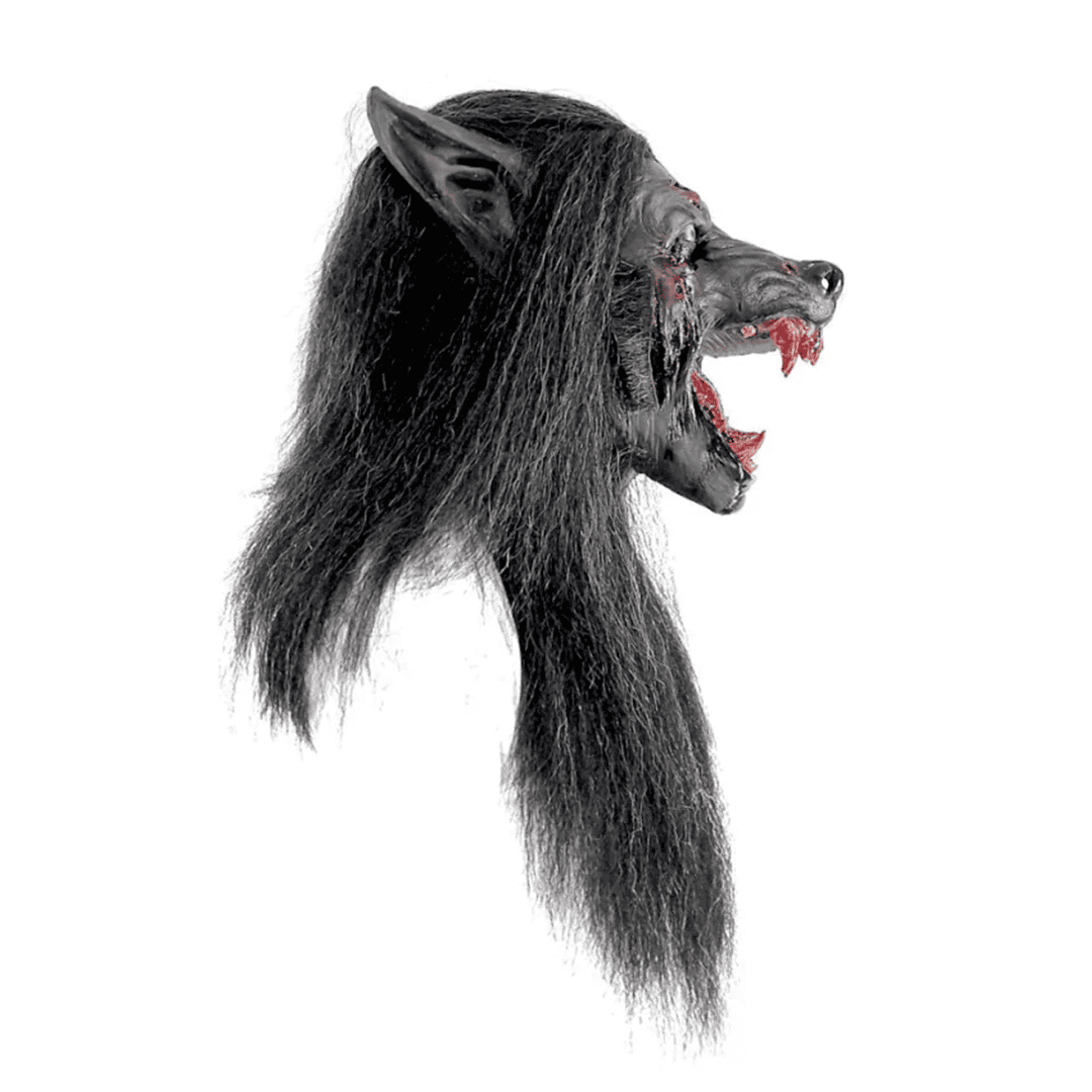 Máscara de látex Black Wolf de la línea de Werewolves. ¡La luna llena llegó este Halloween y con ella los temibles Hombres Lobo! Conviértete en la terrorífica y temible bestia humana con esta máscara. ¡Asusta a todo el que se te acerque y haz que tiemblen ante tu presencia en esta noche de miedo y diversión!