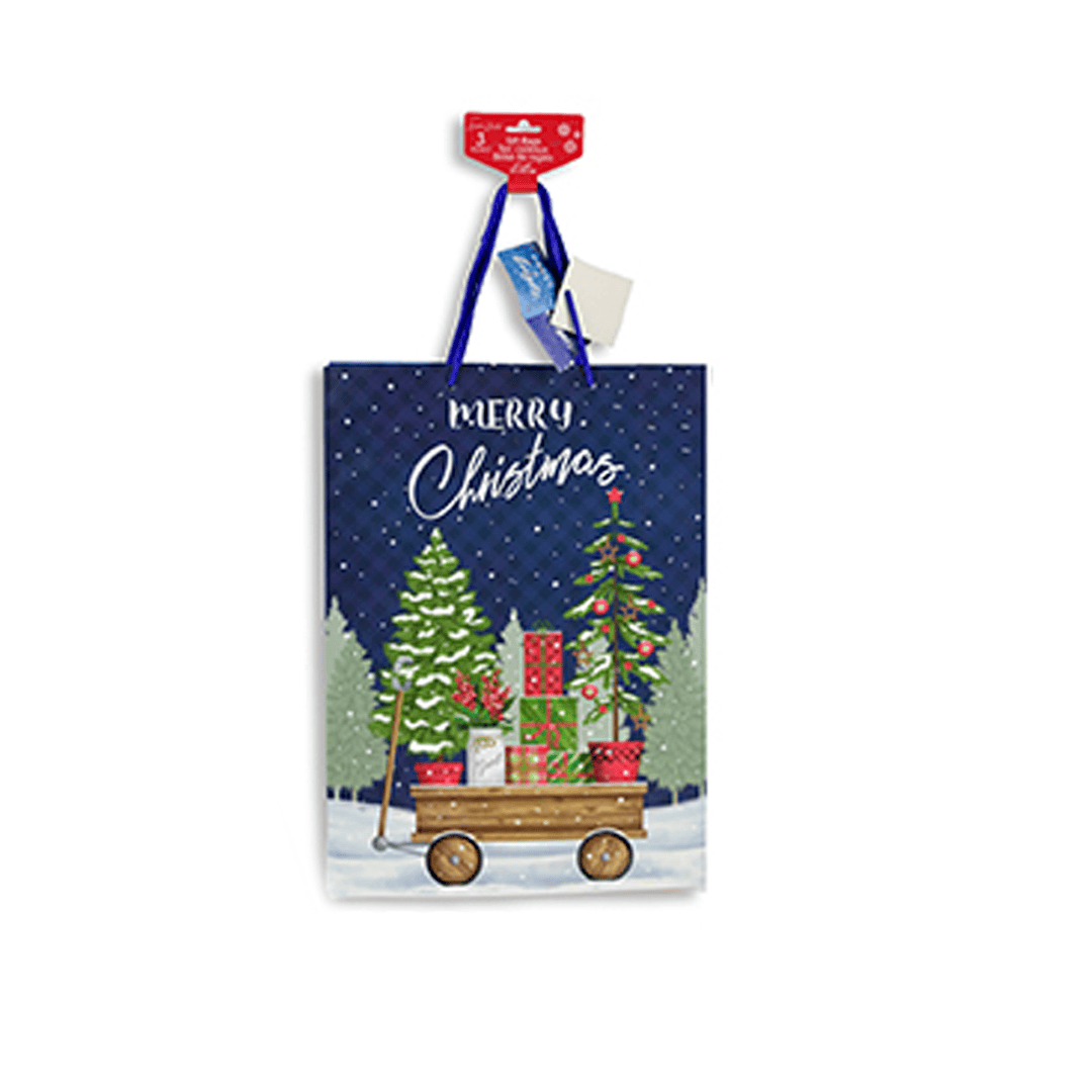 Bolsa de regalo navideña con diseño de carreta Merry Christmas