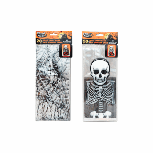 Decoración Accesorio Bolsas para Dulces Calavera o telaraña. Nota: Este producto es de presentación surtida, por lo que podrías recibir cualquiera de sus variaciones. Si prefieres un diseño específico, indícalo en tu pedido; se enviará según disponibilidad.