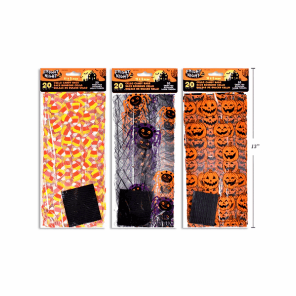 Bolsas de celofán para dulces de 28 x 12 x 7,6 cm. Surtido de 3 estilos. Nota: Este producto es de presentación surtida, por lo que podrías recibir cualquiera de sus variaciones. Si prefieres un diseño específico, indícalo en tu pedido; se enviará según disponibilidad.