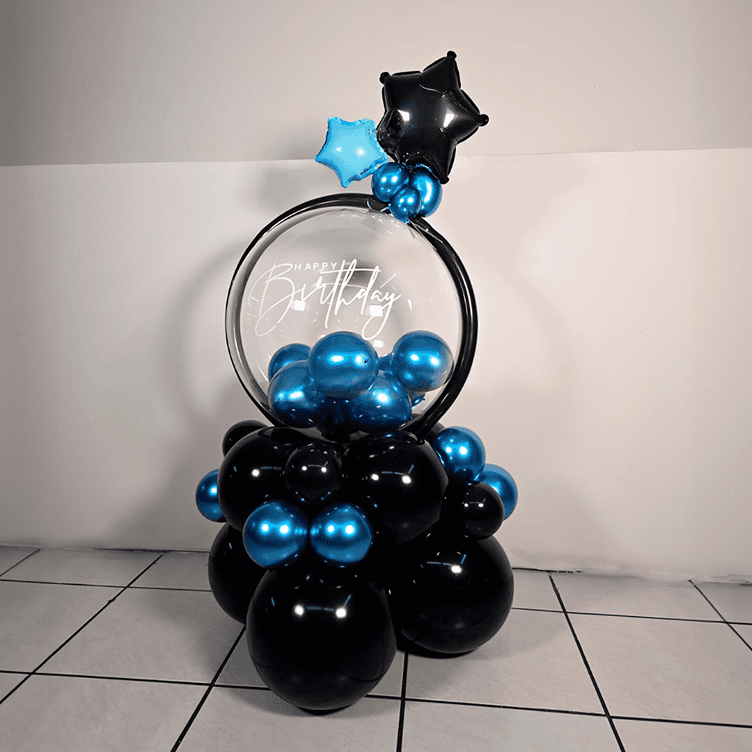 Bouquet de globos látex con globos burbuja personalizada ¡Cotiza la tuya hoy!