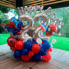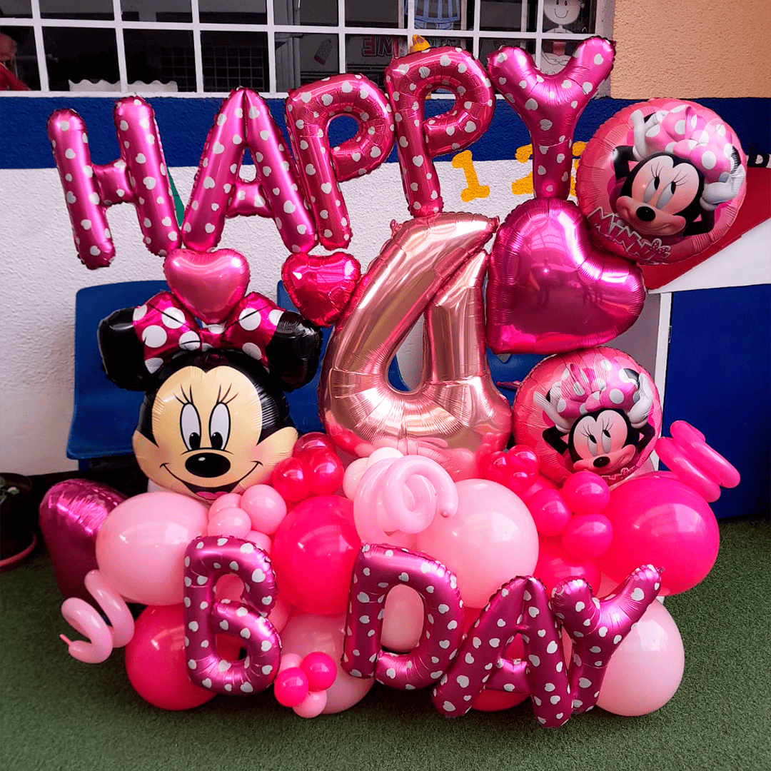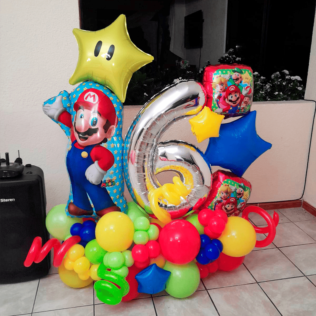 Bouquet de globos látex con letras y números metálicos jumbo acompañado de globos de personajes, crea tu propio diseño ¡Cotiza la tuya hoy!
