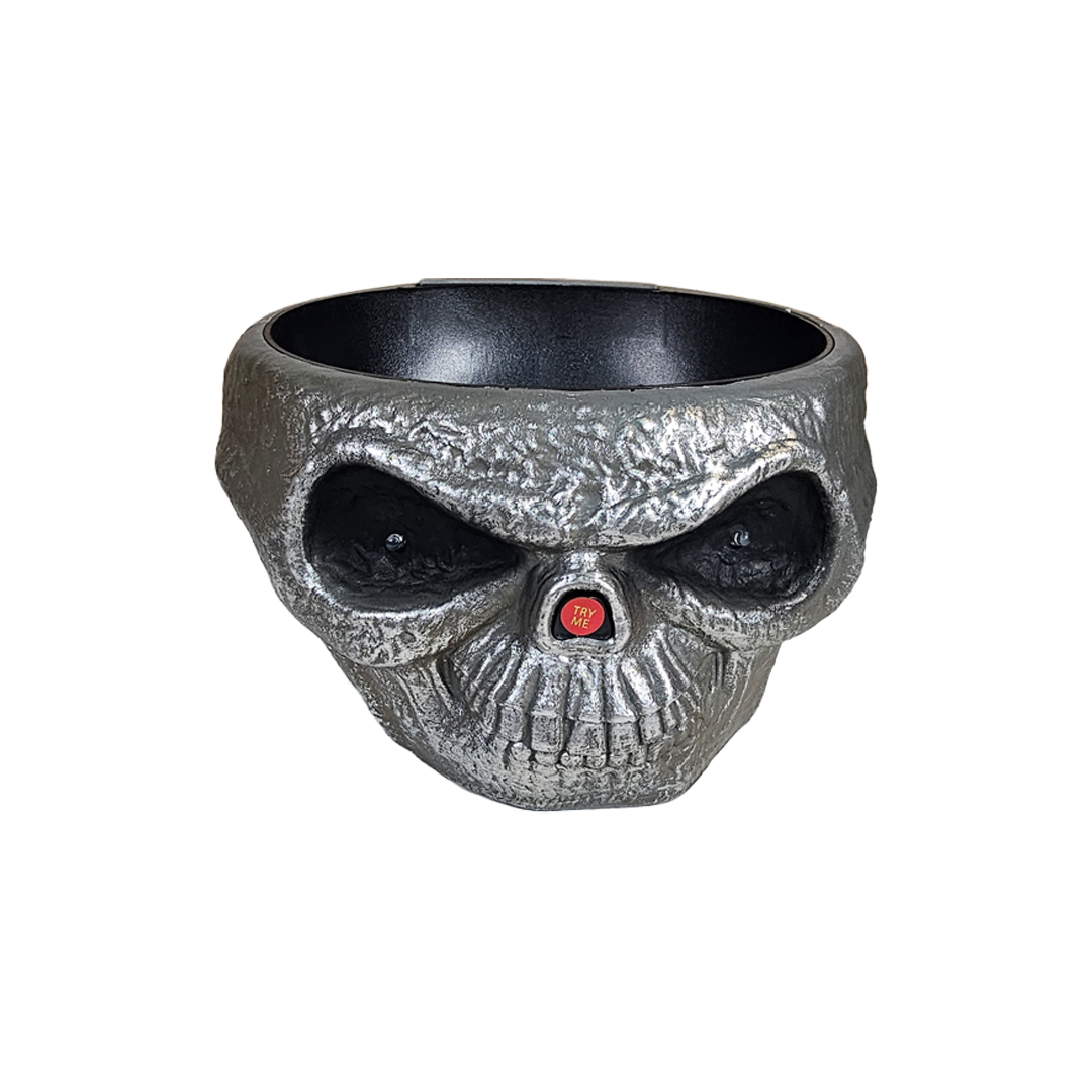 Contenedor de dulces: Bowl de calavera con sensor de mano. útil para repartir en Halloween.
