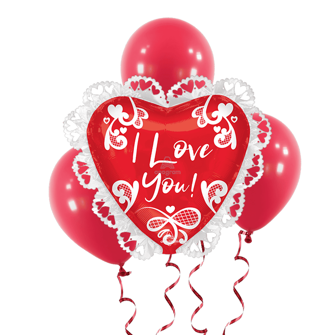 Bunch con helio incluye: Globo metálico en forma de corazón con flecos blancos frase I Love you de 23″ + 3 globos látex de 12″ (colores a elección) y peso para globos. 026635437028. Nota: el precio es exclusivo para compra en sitio web. Puede agregar la elección de colores en el check out.
