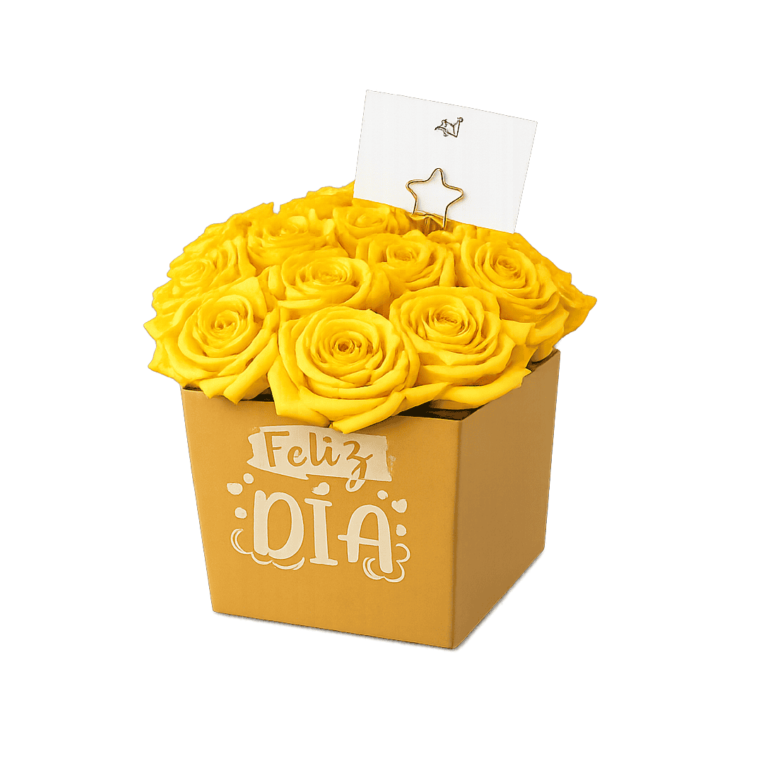 Caja de 12 rosas amarillas, incluye: 12 rosas naturales, en caja de cartón cuadrada con textura, tarjetita. Nota: El color de las flores, y caja puede variar según disponibilidad en tienda. El precio de los ramos puede variar según temporada del día de cariño o día de la madre, el pedido se envía con 1 día de anticipación, no se realizan entregas el mismo día; No se cuenta con envíos a departamentos.