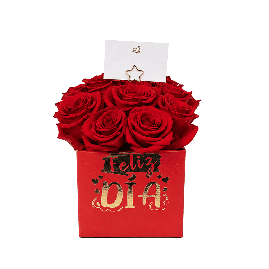 Caja de 12 rosas rojas, incluye: 12 rosas naturales, en caja de cartón cuadrada con textura, tarjetita. Nota: El color de las flores, y caja puede variar según disponibilidad en tienda. El precio de los ramos puede variar según temporada del día de cariño o día de la madre, el pedido se envía con 1 día de anticipación, no se realizan entregas el mismo día; No se cuenta con envíos a departamentos.