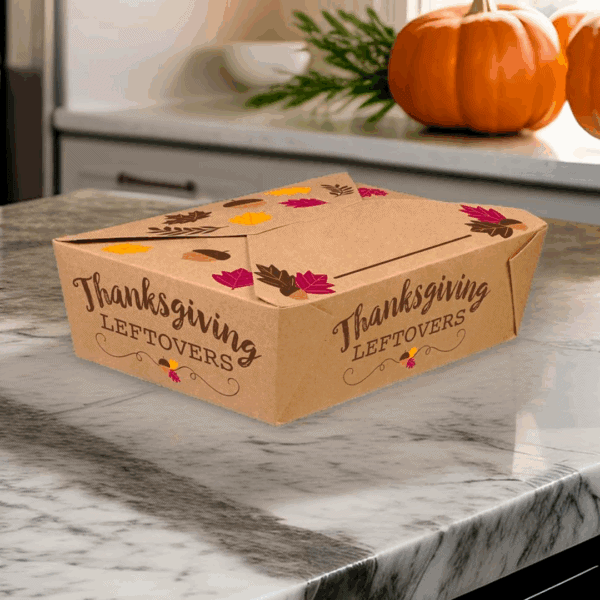 Cajas de papel plegables para llevar de Acción de Gracias (2.5 x 8.25 x 6 pulgadas), paquete de 5 unidades