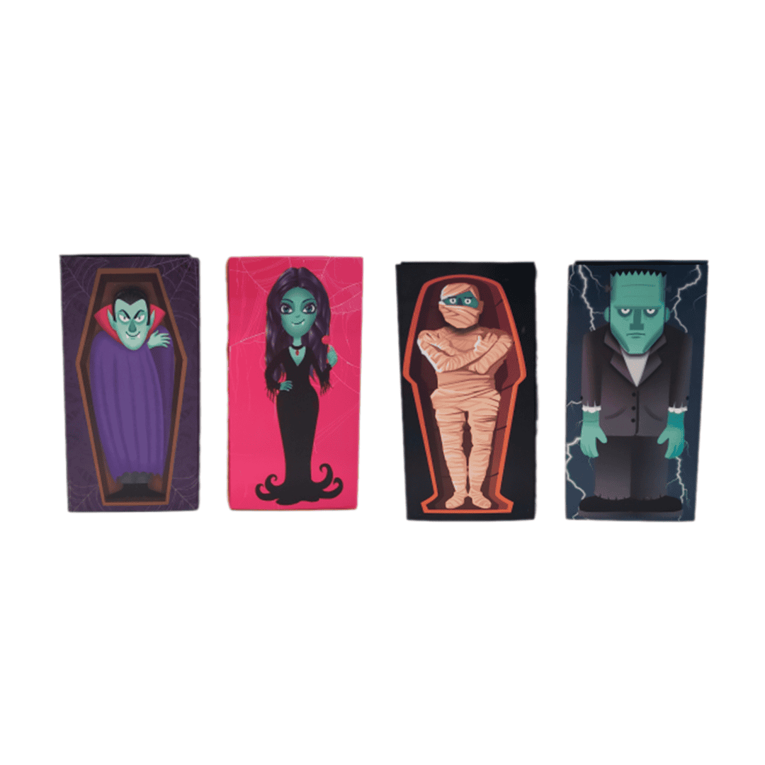 Caja para dulces Halloween, diseños surtidos. Nota: Este producto es de presentación surtida, por lo que podrías recibir cualquiera de sus variaciones. Si prefieres un diseño específico, indícalo en tu pedido; se enviará según disponibilidad.