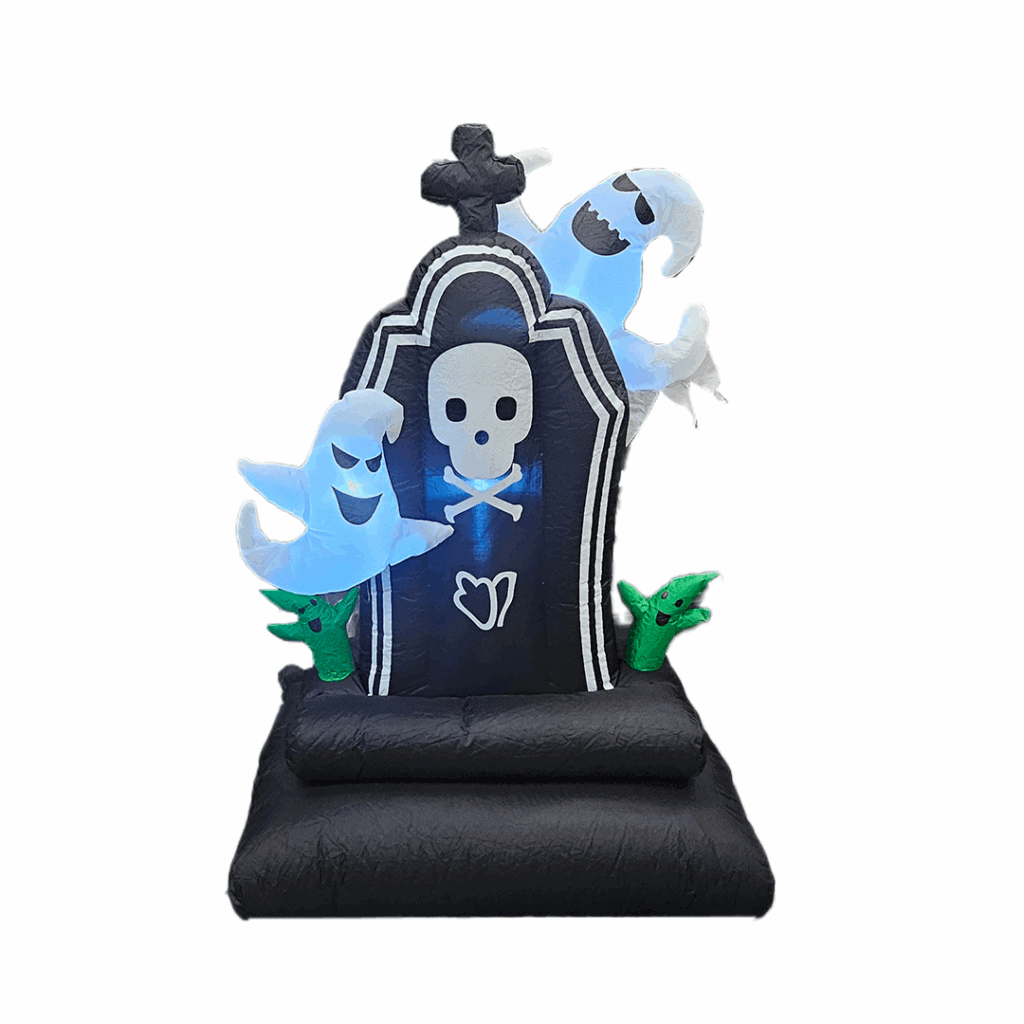 Conjunto de calabazas inflables de 1.65 m con temática de cementerio.