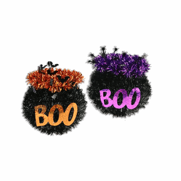 Caldero de oropel de Halloween. Colores surtidos. Tamaño de 4,13 pulgadas. Nota: Este producto es de presentación surtida, por lo que podrías recibir cualquiera de sus variaciones. Si prefieres un diseño específico, indícalo en tu pedido; se enviará según disponibilidad.