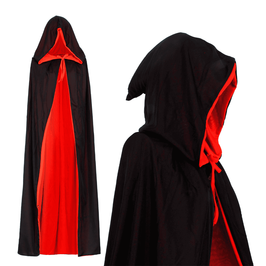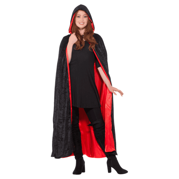 Capa negra con capucha interior roja estilo vampiro gótico para mujer