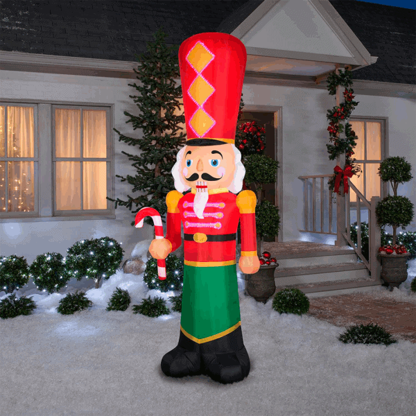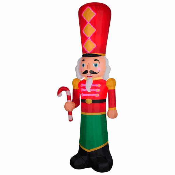 Cascanueces inflable de Navidad con microLED, 9 pies de alto, color rojo. Dimensiones: 107.87″ x 38.58″ x 24.8″