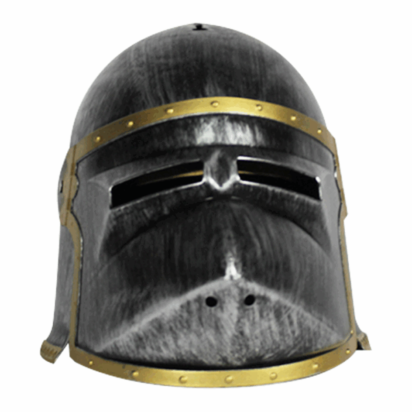 Accesorio: Casco medieval plateado. complemento funcional para disfraz o juego temático.