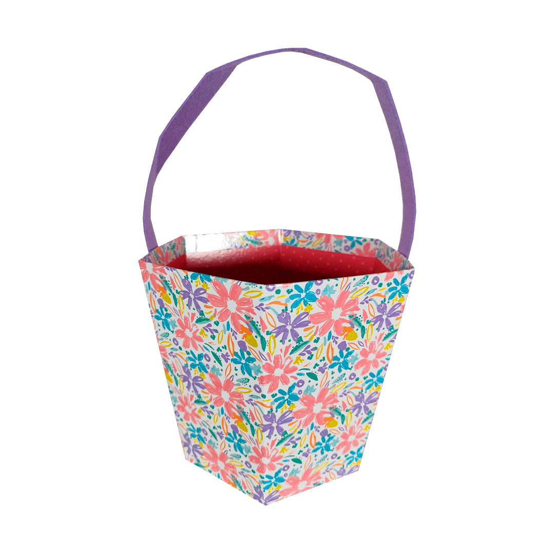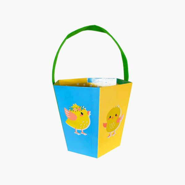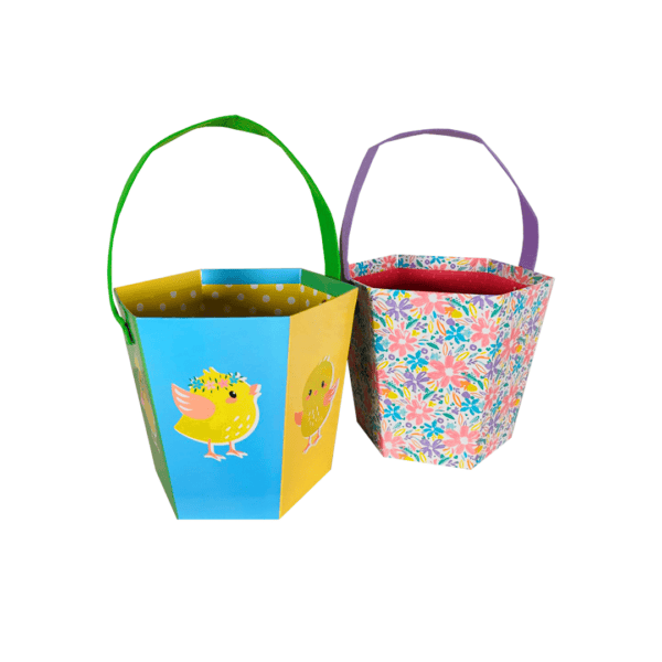 Cesta hexagonal, diseño de pollitos o flores multicolor. Nota: Este producto es de presentación surtida, por lo que podrías recibir cualquiera de sus variaciones. Si prefieres un diseño específico, indícalo en tu pedido; se enviará según disponibilidad.