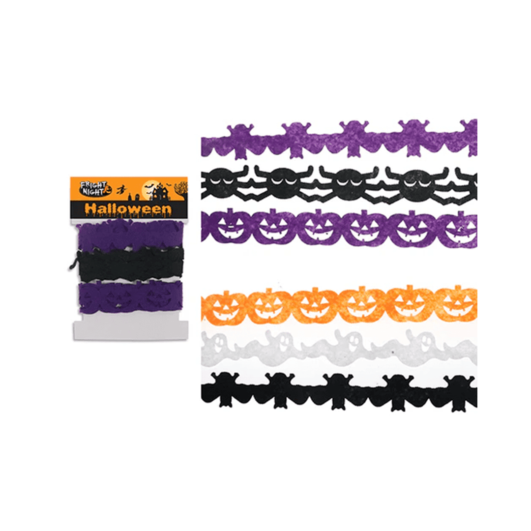 Cinta de fieltro troquelada Hween de 3 yardas. 1 yarda/estilo. 3 estilos/paquete. Bolsa de polietileno con inserto.