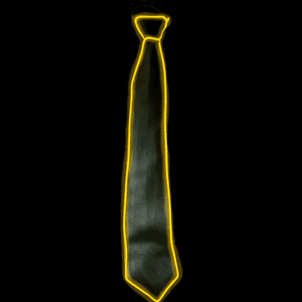 Corbata negra luz amarillo LED, funciona con baterias doble AA (no inclute baterias). 1 unidad por paquete.