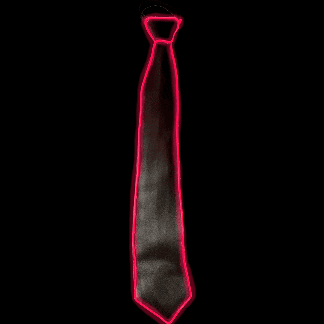 Corbata negra luz rosada LED, funciona con baterias doble AA (no inclute baterias). 1 unidad por paquete.