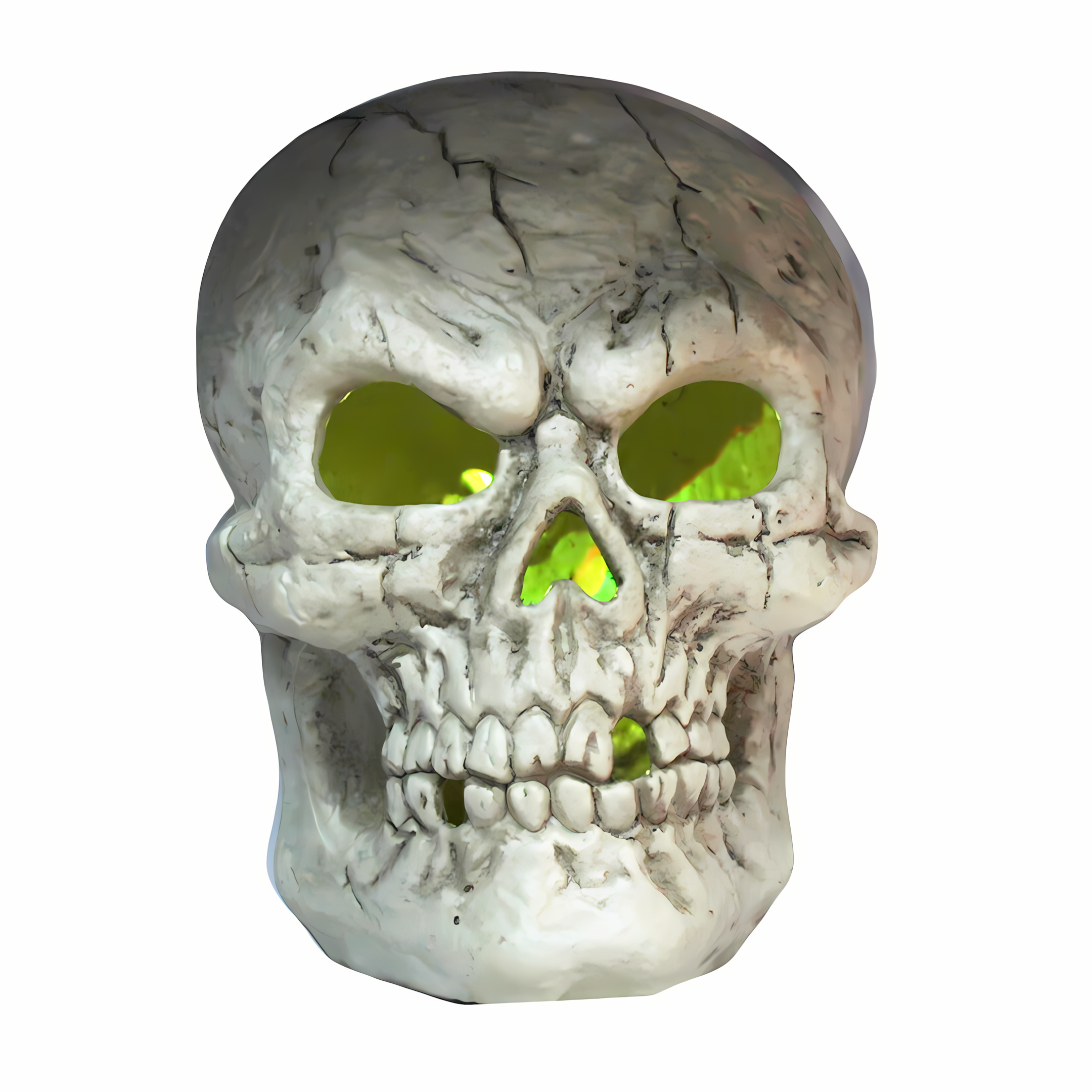 Accesorio decorativo: Cráneo grande con luz para decoración. ideal para ambientación temática o de Halloween.
