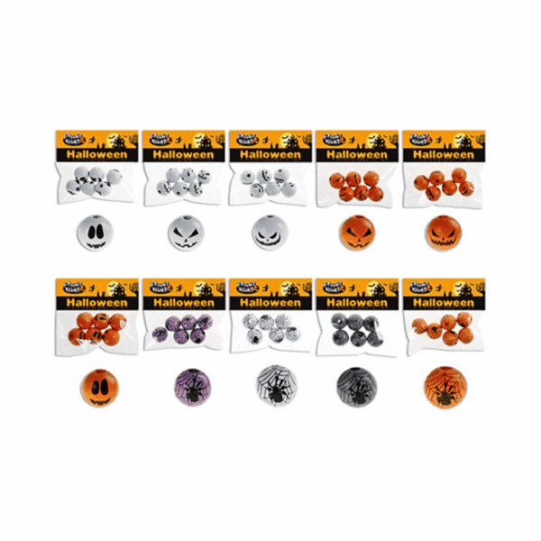 Cuentas de madera impresas de Halloween. Estilos surtidos. 6 piezas por paquete.