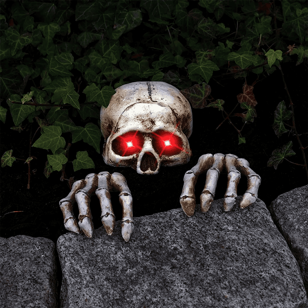 Decoracion calavera y manos con luz roja
