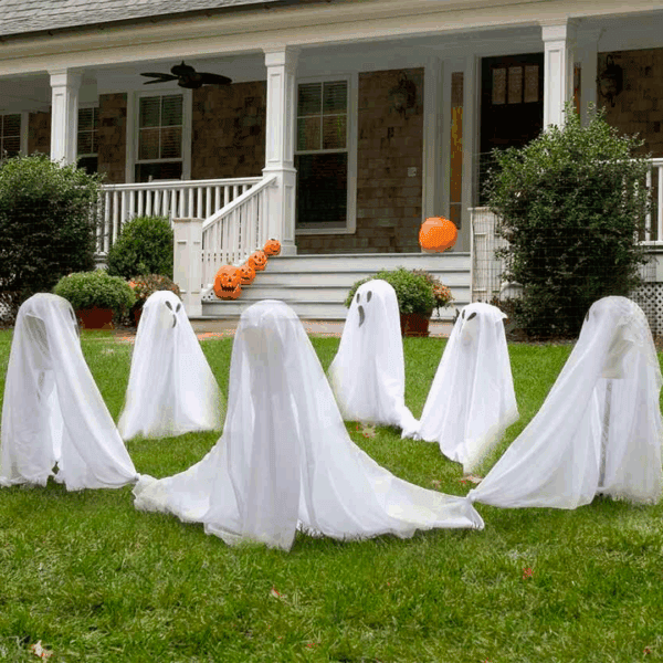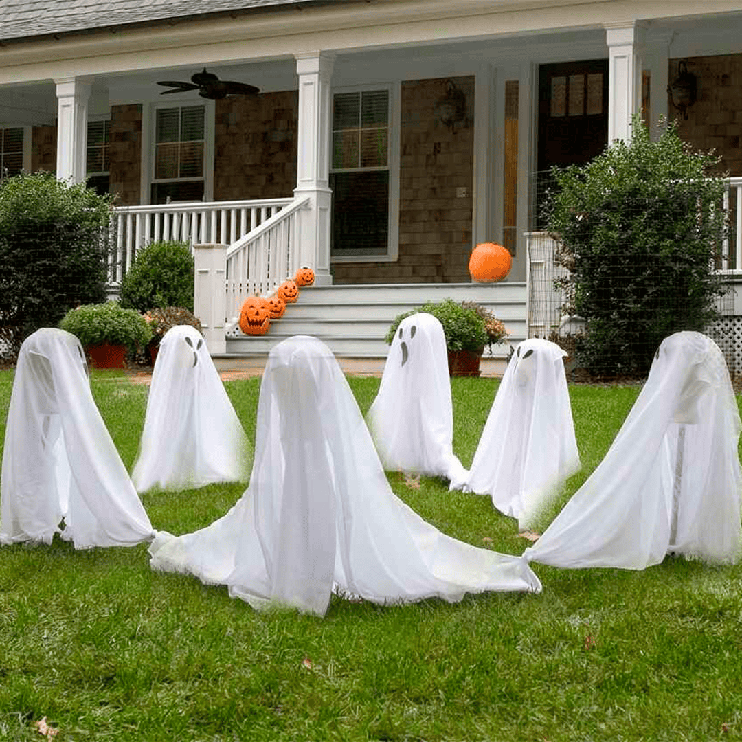Set de decoración de Halloween de fantasmas de grupo fantasma, paquete de 3 piezas. De divertido a aterrador, sentimental a aterrador, ponlos en el porche, en el patio o en la fiesta.
