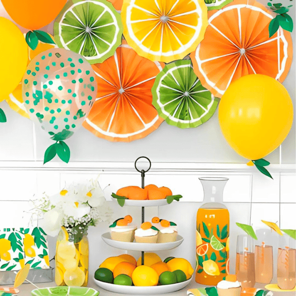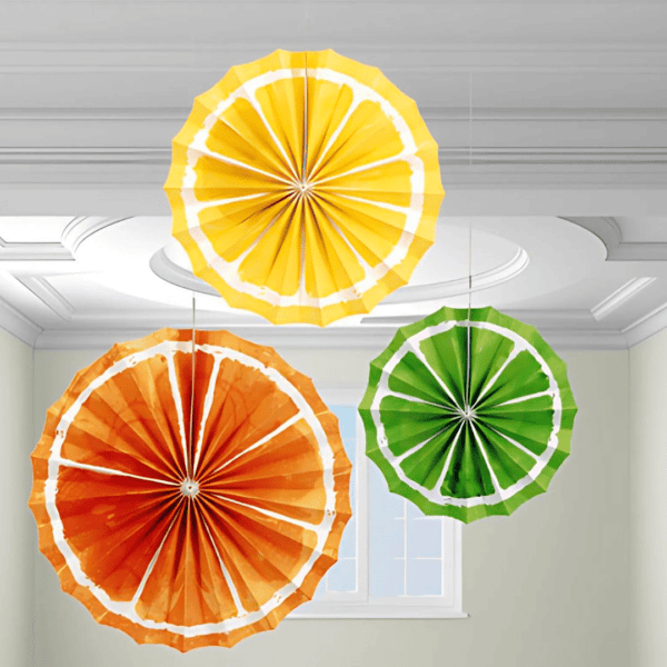 Abanicos de papel multicolor de frutas cítricas (paquete de 3) – 11.75 x 11.75 x 0.75 pulgadas | Diseño vibrante, decoraciones de fiesta perfectas para fiestas de verano, eventos.