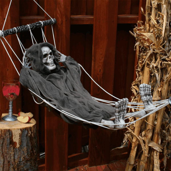 Decoración Lazy Bones de 3 pies en hamaca de 5 pies.