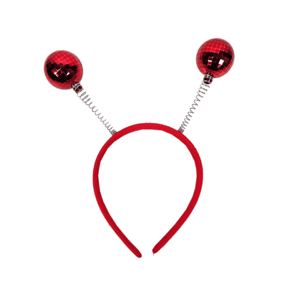 Diadema antenas bolas disco, disponible en dorado, plateado o rojo. Nota: Este producto es de presentación surtida, por lo que podrías recibir cualquiera de sus variaciones. Si prefieres un color específico, indícalo en tu pedido; se enviará según disponibilidad.