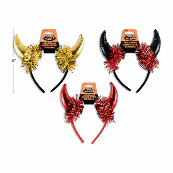 Diadema de cuerno de diablo para Halloween, tamaño 7 x 7,25 pulgadas. Nota: Este producto es de presentación surtida, por lo que podrías recibir cualquiera de sus variaciones. Si prefieres un diseño específico, indícalo en tu pedido; se enviará según disponibilidad.