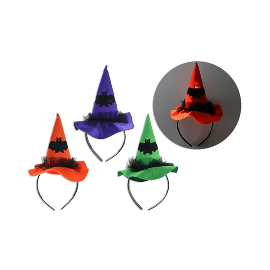 Diadema de sombrero de bruja de Halloween con luz LED. Nota: Este producto es de presentación surtida, por lo que podrías recibir cualquiera de sus variaciones. Si prefieres un diseño específico, indícalo en tu pedido; se enviará según disponibilidad.