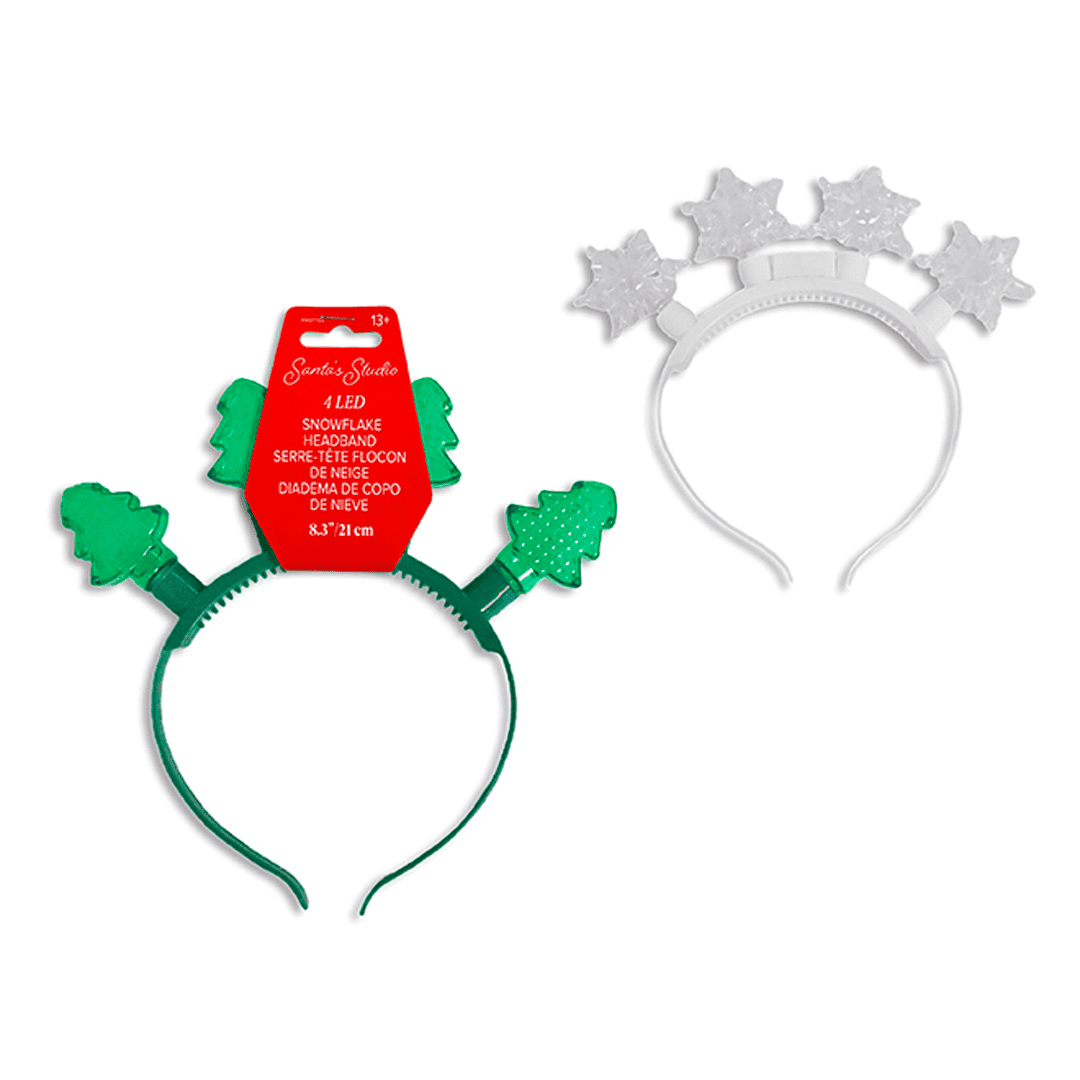 Diadema LED en forma de copo de nieve/árbol. Nota: Este producto es de presentación surtida, por lo que podrías recibir cualquiera de sus variaciones. Si prefieres un color específico, indícalo en tu pedido; se enviará según disponibilidad.